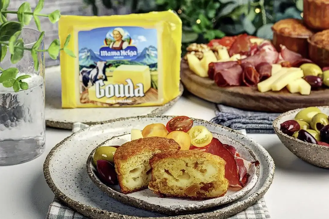 Peći na 180 stepeni oko 20 minuta tj. dok projice fino porumene. Ostaviti malo, a zatim servirati uz Pastir suhomesnate proizvode, još malo isečenog Mama Helga sira i maslina, ajvara, oraha, paradajza.